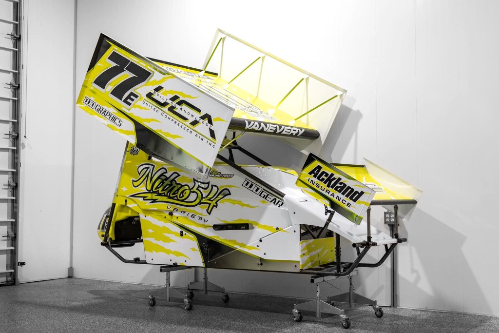 New look for Ashton VanEvery for the 2024 season! These custom printed chrome accents make it pop! I had the pleasure of designing his personal logo, car and custom gear. Looking forward to having him represent DJD Graphics & DJD Gear this season! ![]()
