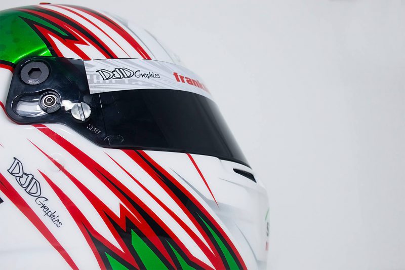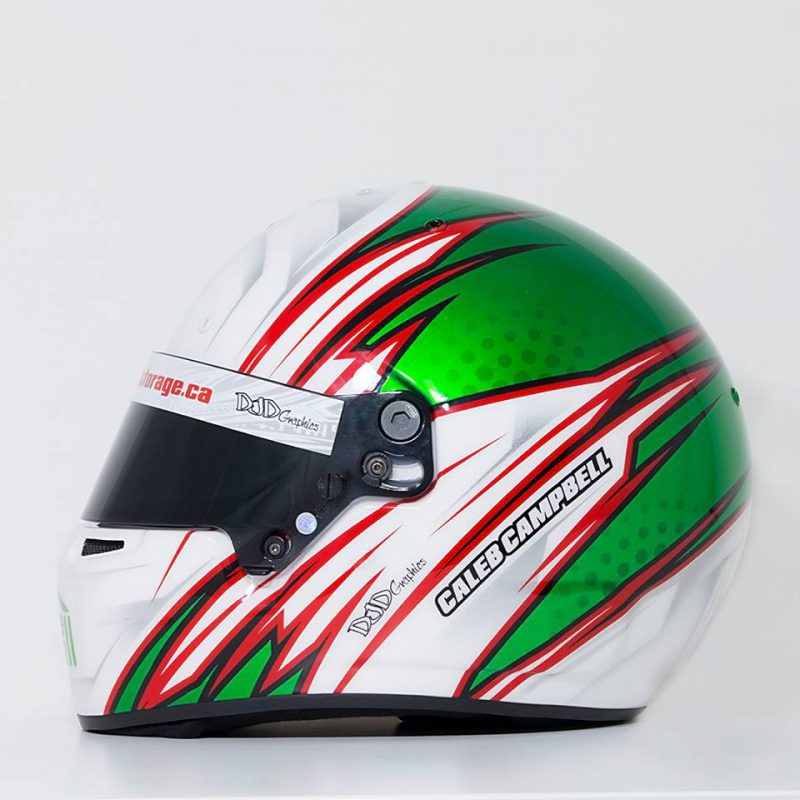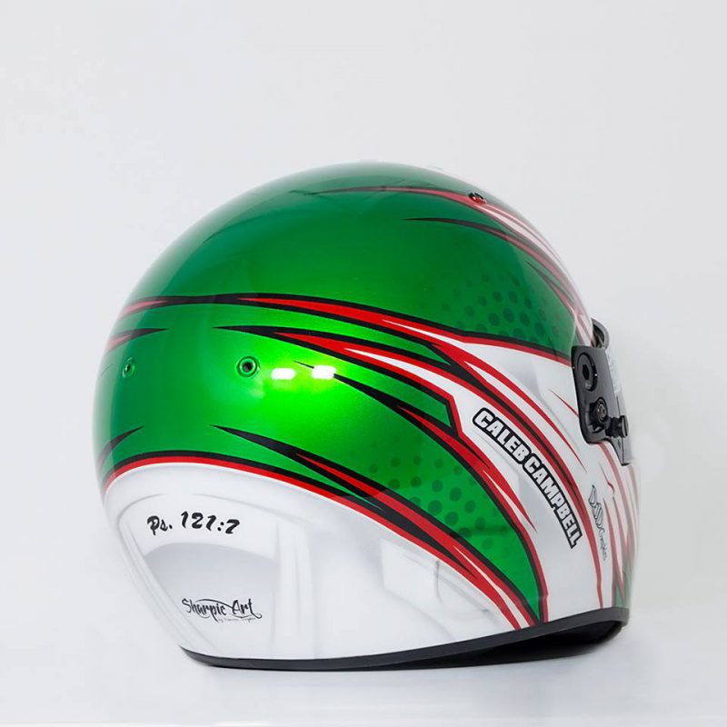 Caleb Campbell’s fresh looking Bell RS7K karting helmet I painted for him here at DJD Graphics. Sporting his sharp looking matching DJD Graphics kart wrap.