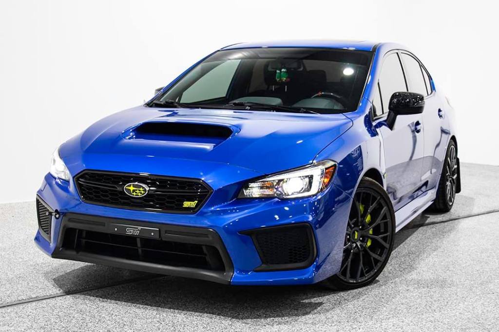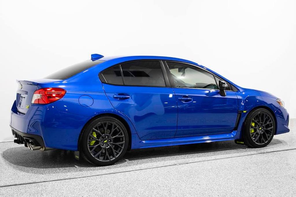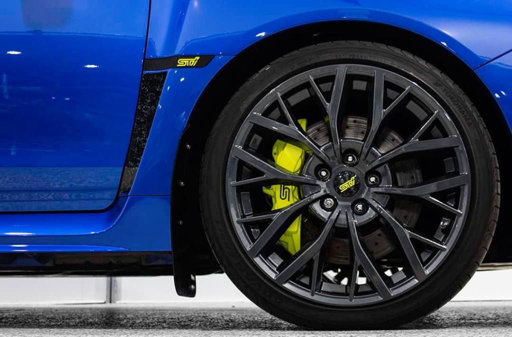 Custom forged carbon fiber and fluorescent yellow wrapped accents on Ian Santos’s 2018 Subaru STI. Looking better than new.