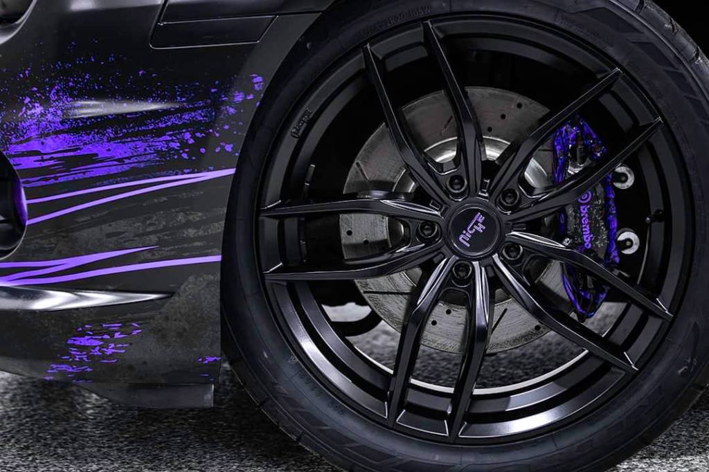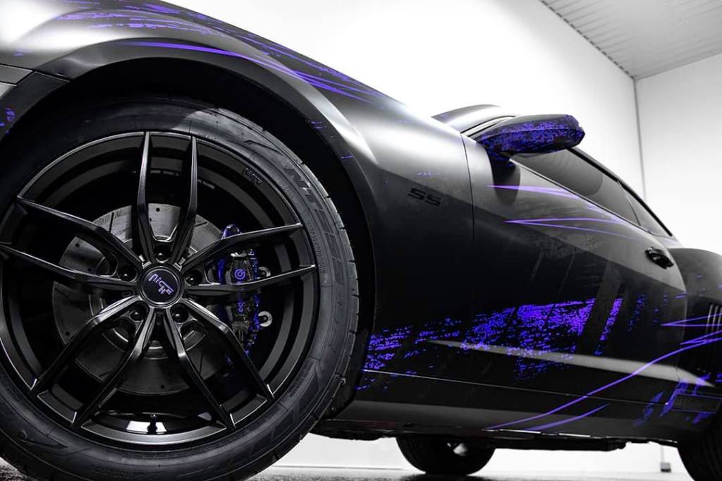 I decided on a 3M Matte finish with gloss accents throughout, embossed stripes, purple chrome accents, purple fog lights, wrapped interior and wrapped calipers! We also hooked them up with a wheel package to suit this new look. Thanks to Nakita for your trust in me on this!