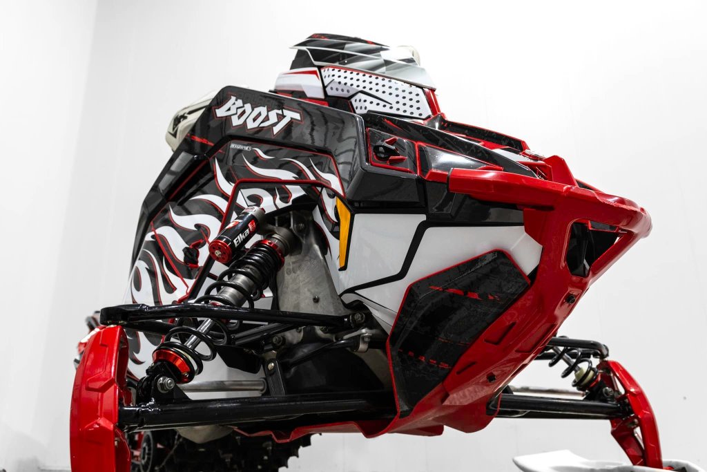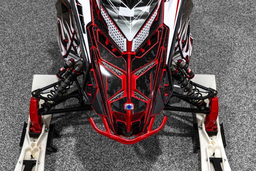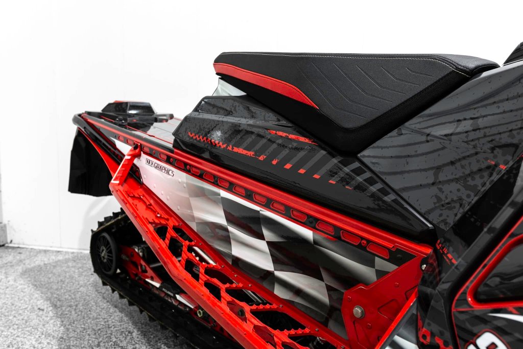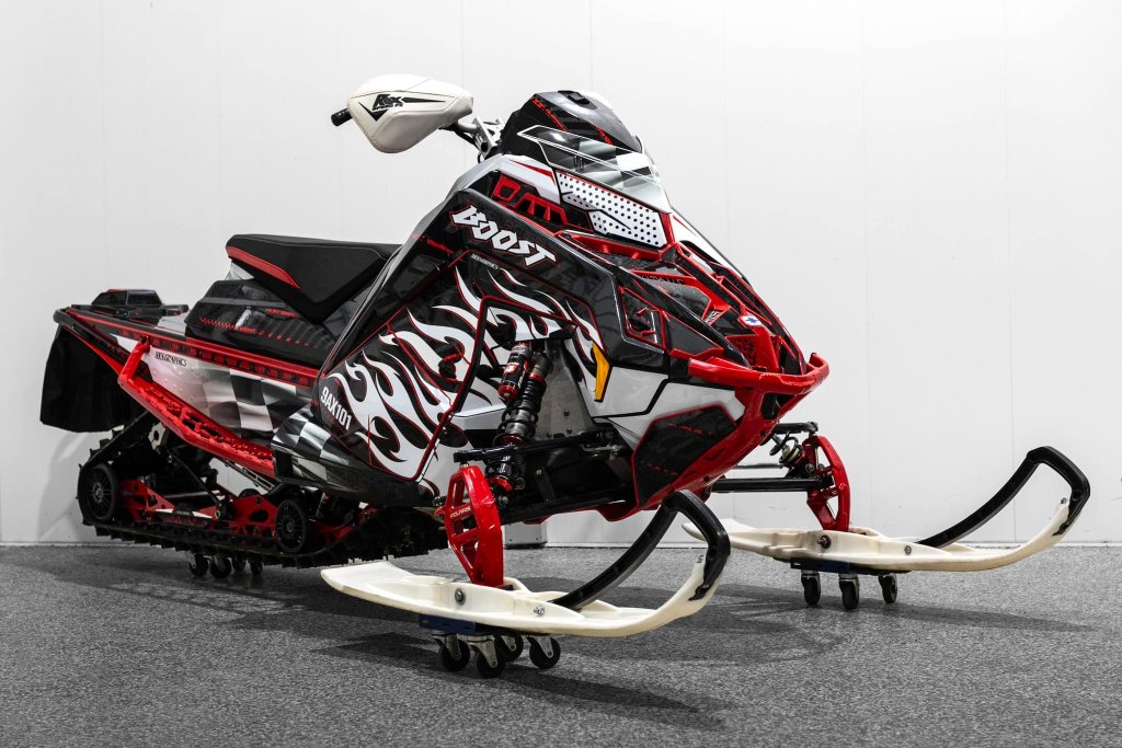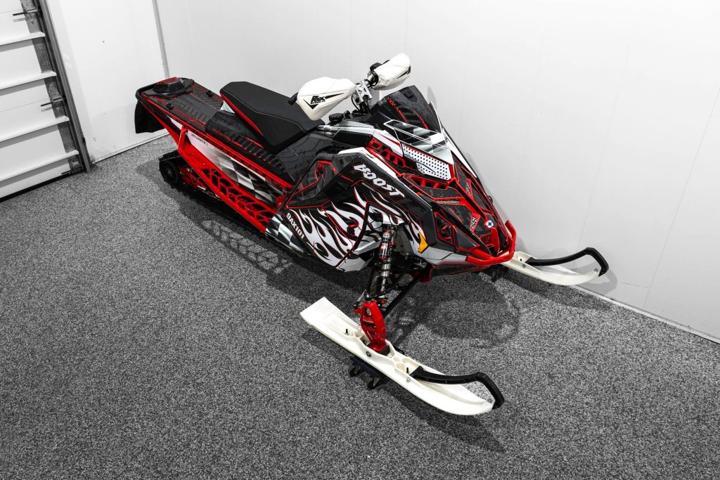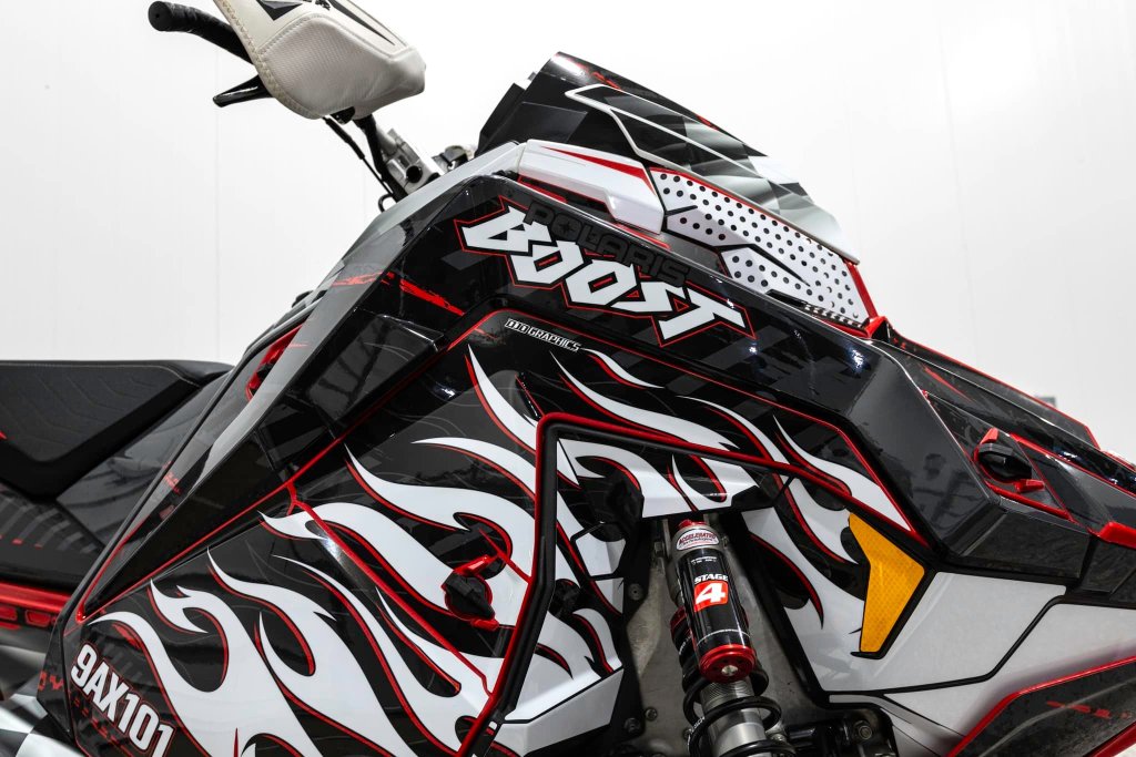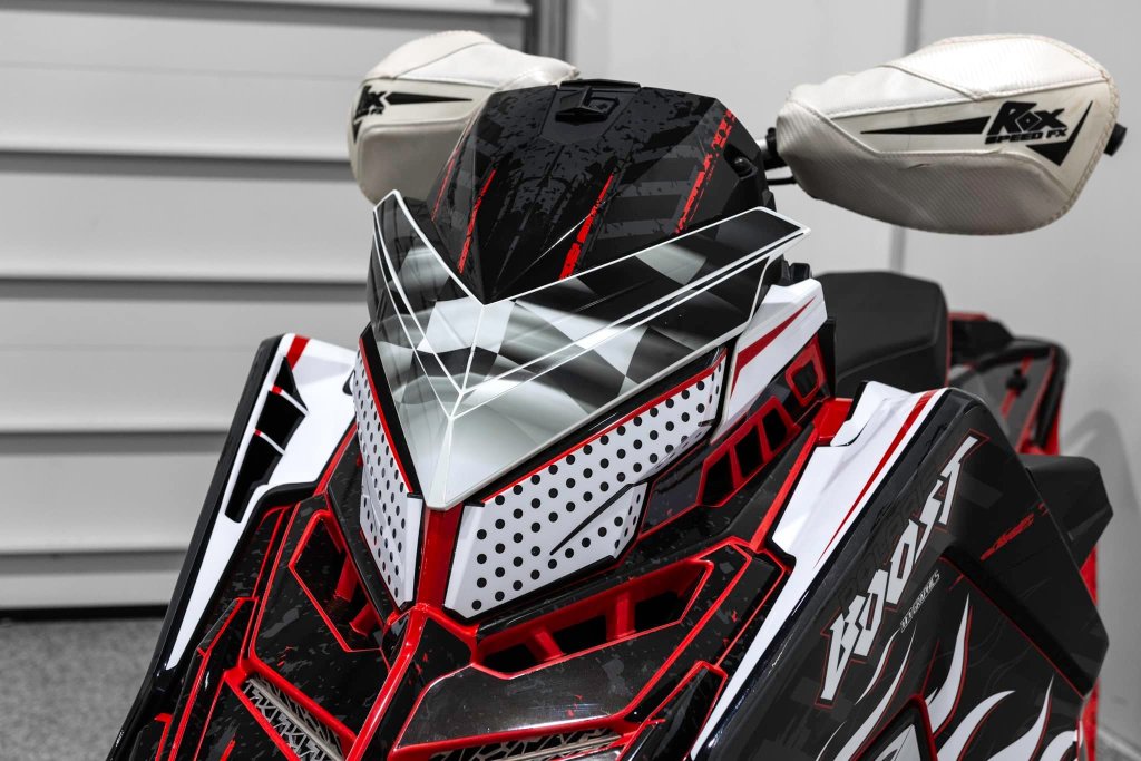 Snowmobile graphics designed, printed and installed for John Cadman! All of our graphics are one-off designs personalized for each client! For this one, the request was some checkered flags and flames within the design. Colour choice being red to tie into the body parts with some white to tie in the skis. This was the result!