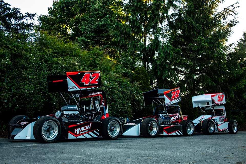 A team of Can-Am Midget race cars designed and wrapped for Daniel Hawn.