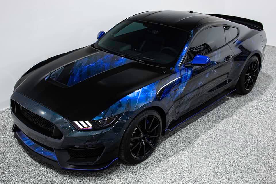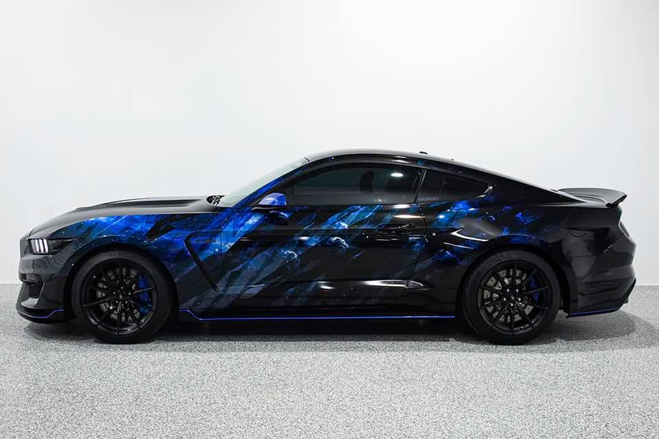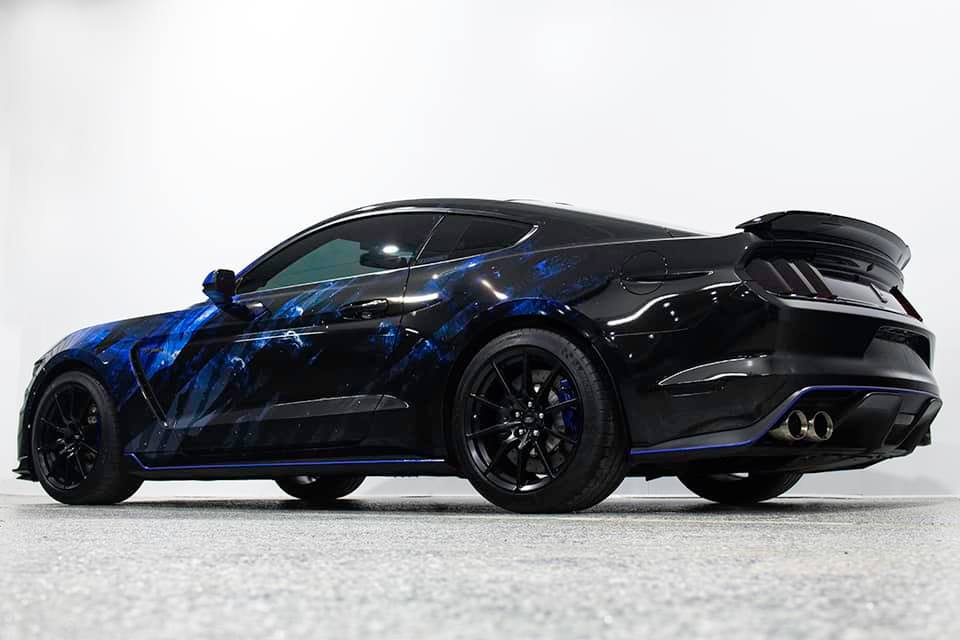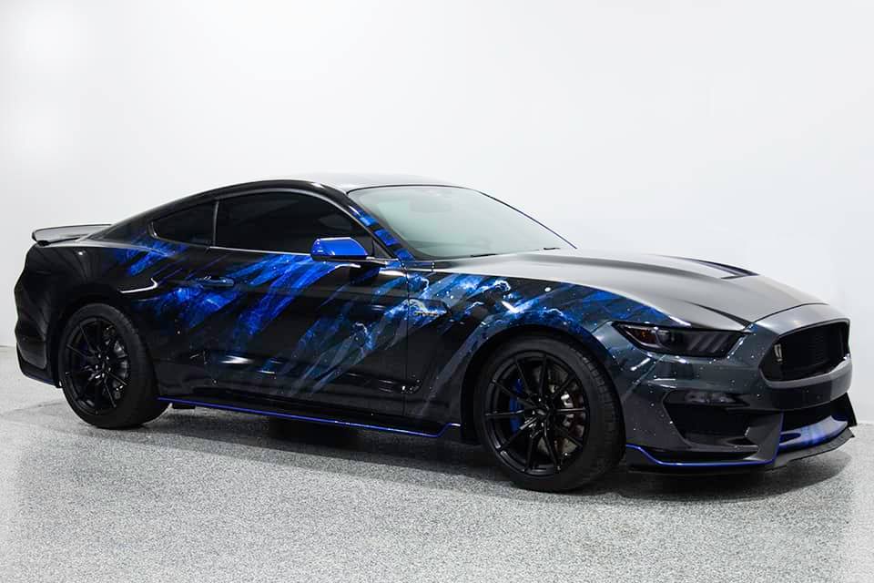 Well here it is! This Shelby GT350 came in metallic grey with factory stripes and left with new custom skin and embossed snake skin stripes