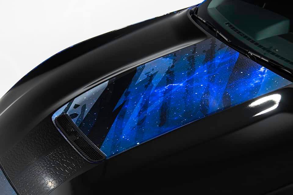 A full wrap with tons of detail from custom artwork printed on 3M IJ180 Metallic Series wrap film, to embossed textured stripes and custom tail lights. Scroll through the photos to see all the details!