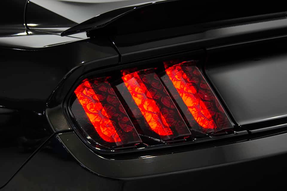 Another happy client…thank you for your trust. He simply stated he may be interested in a full custom wrap with maybe some blue while keeping it aggressive looking and doing some embossed snake skin stripes. He let me run with it putting my creativity to use and after I presented him the ideas in a rendering on one side of the car he was excited to move forward. I decided to do the wrap asymmetrical like my own cars and surprised him with the other side being different. I also threw in some other surprises like the custom reptile scale tail light tint. He is loving the new look!