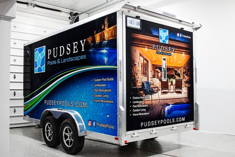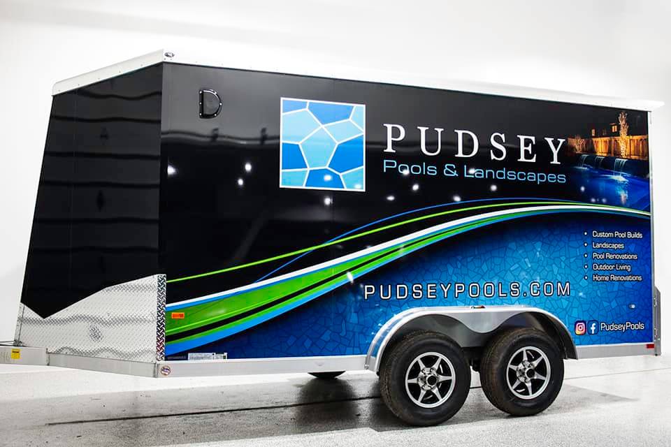 Full wrap completed on this new trailer for the ultimate protection and advertising. Contact their team if you are looking to create your ultimate outdoor living experience. Top notch work between pools and landscapes!Design, print and install were all completed in-house here at DJD Graphics. I’m extremely pleased with how well I have my new printer running and producing these high quality prints.