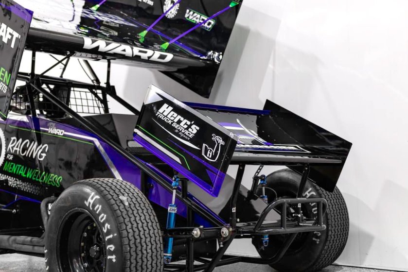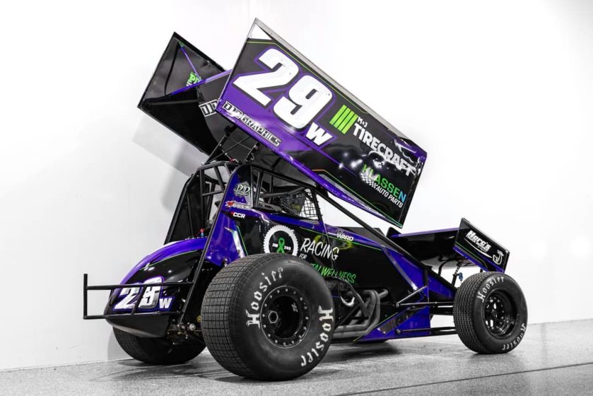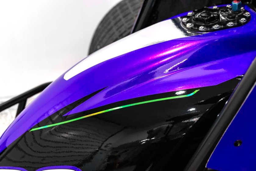 The Racing for Mental Wellness #29w has a unique look for 2023! Metallic purple, silver chrome, and custom holographic green chrome!