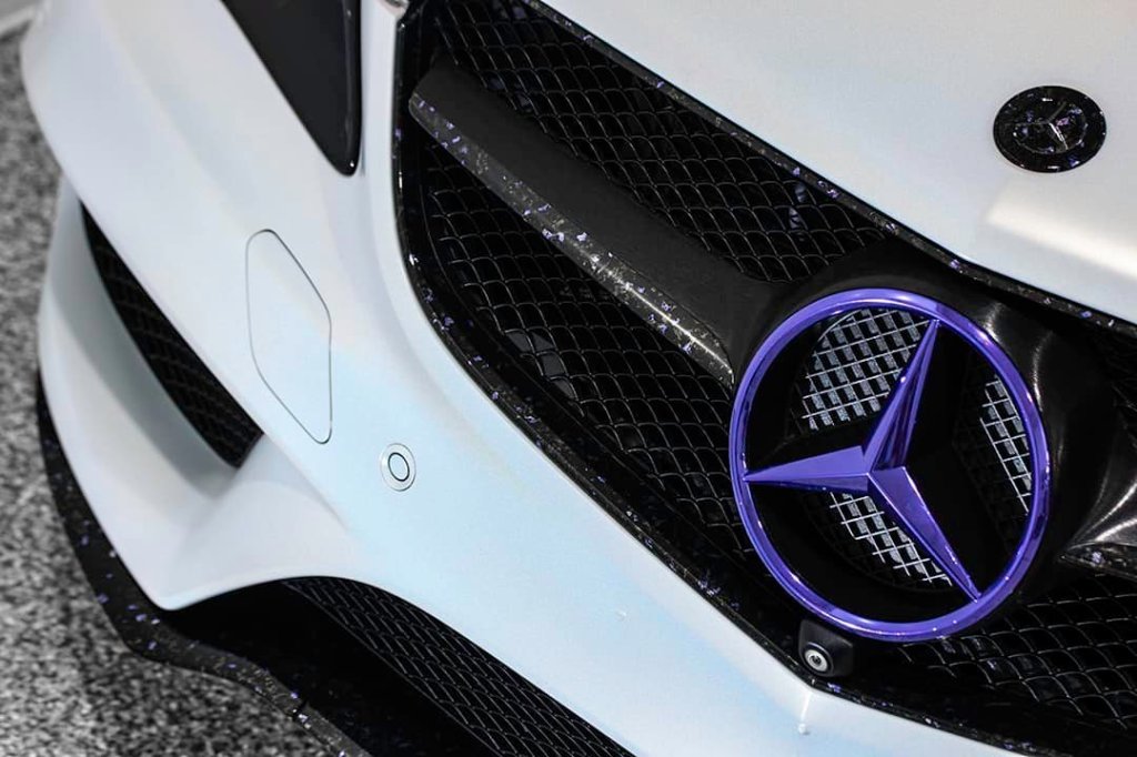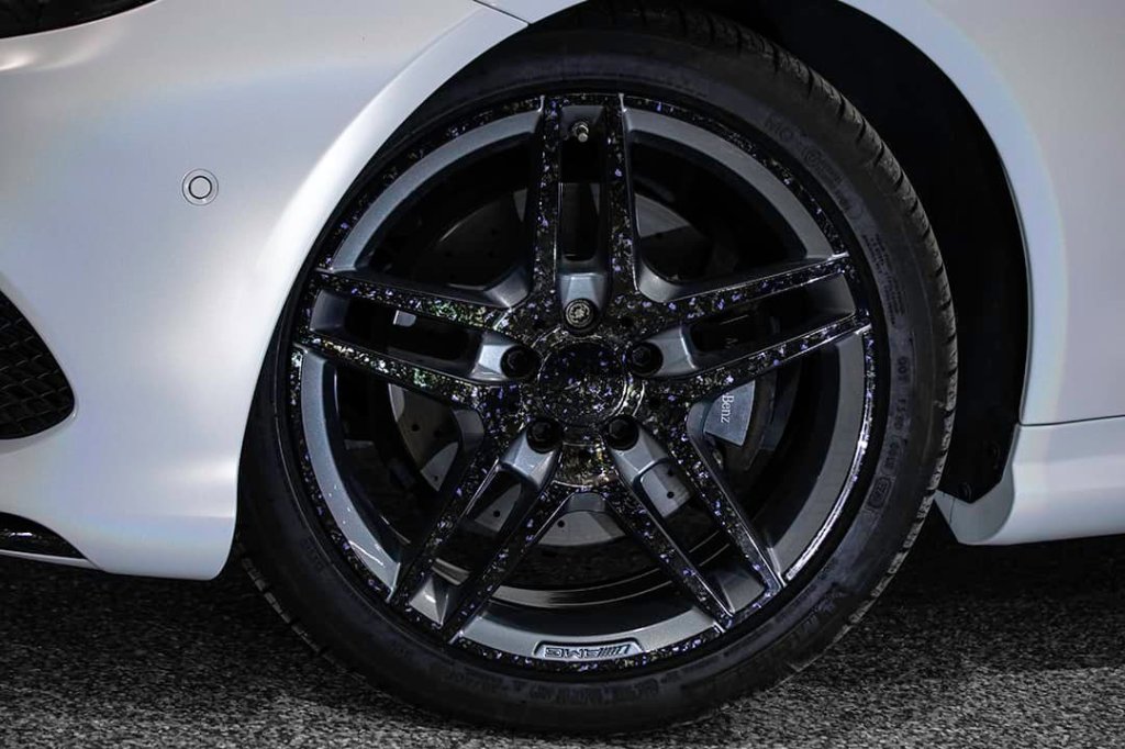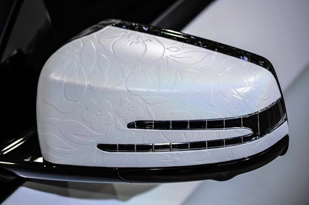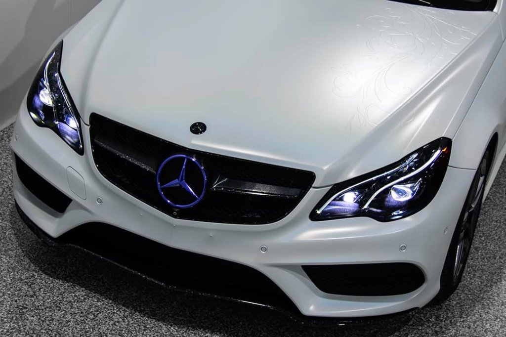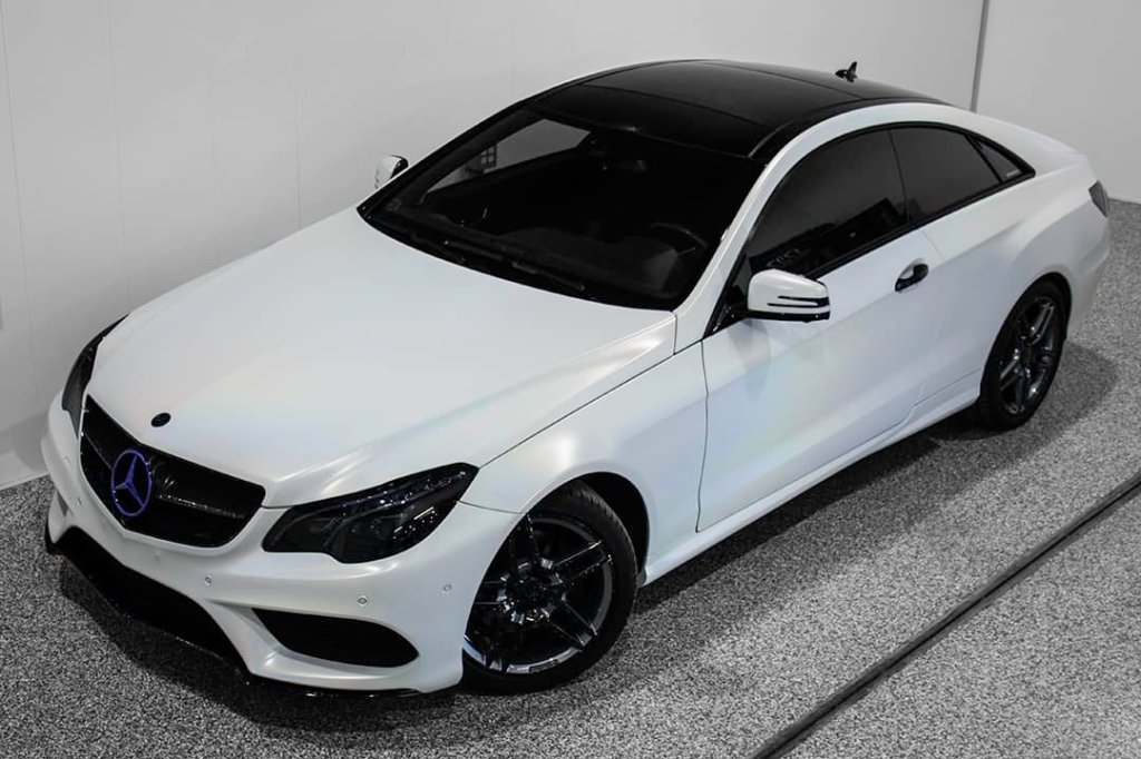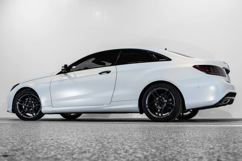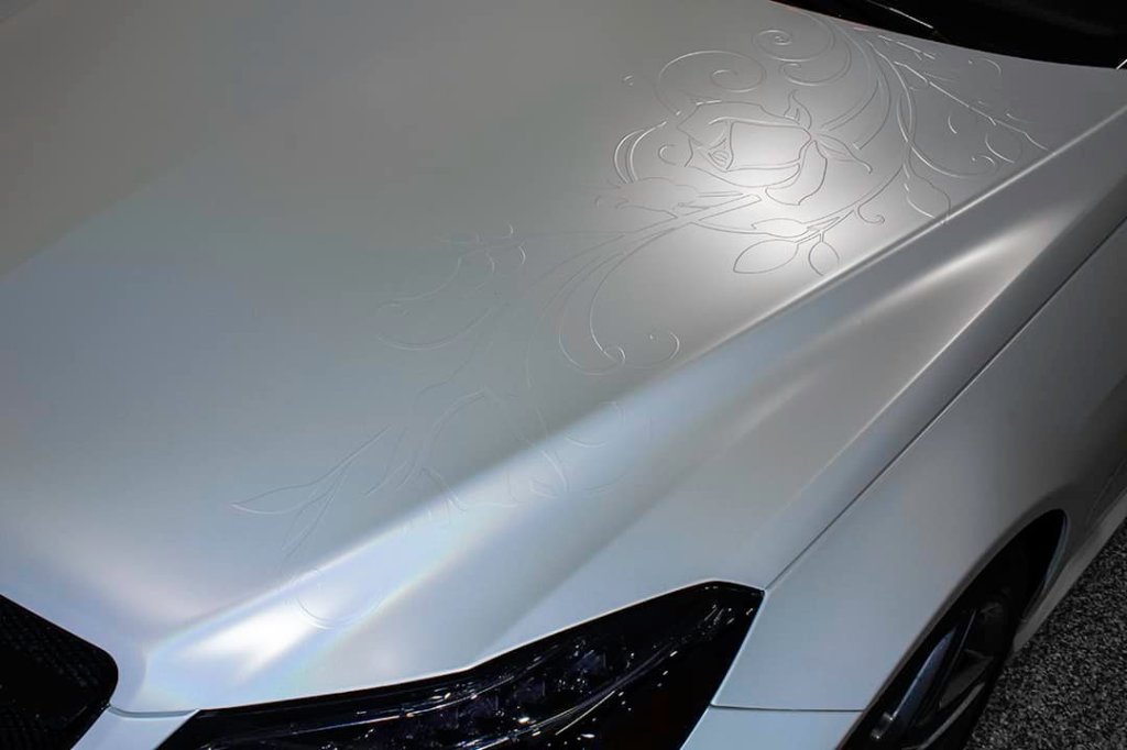 Another unique project where I was given full creativity on the wrap other than a request for a metallic white base colour. Transforming this once basic looking silver E-Class Mercedes with lots of chrome into something of her own style. I decided on 3M Satin Flip Ghost Pearl (rainbow colour flip effect) with some hidden embossments of roses and flowers, accents of custom forged carbon fiber with purple flake, and accents of 3M Brushed Black Metallic. Topped with Ceramic Pro coating for the ease of maintenance and added protection!
